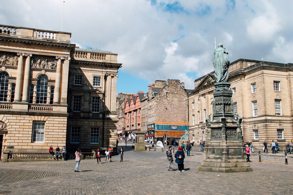 Далее идем в направлении Королевской мили, которая включает четыре улицы (Cashill, Lawnmarket, High Street, Canongate) и соединяет Эдинбургский и Холирудский дворцы. История мили началась в XII веке, когда король Шотландии Давид I дал право местному поселению торговать у подножия замка. С тех пор внешний вид мили не сильно изменился: вымощенная булыжниками мостовая с многочисленными ресторанчиками, кафе, сувенирными лавками и музеями. Начни с улицы High Street и иди вверх.