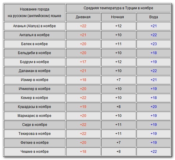 Еще можно позагорать на Анталиском побережье. Средние дневные показатели: +20-23℃, море в начале ноября: +17-18℃.