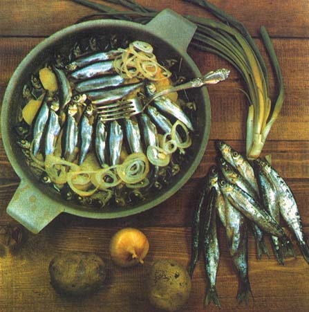 Не зря это небольшое виртуальное кулинарное путешествие было начато упоминанием многочисленных карельских озер. Дело в том, что рыба, которой изобиловали местные водоемы с давних пор, является основной пищей людей, населявших регион. Употребляли ее в самых разных видах: готовили свежую, солили (по-карельски — suolattu kala), квасили, вялили (ahavoittu kala), но почти никогда не коптили.