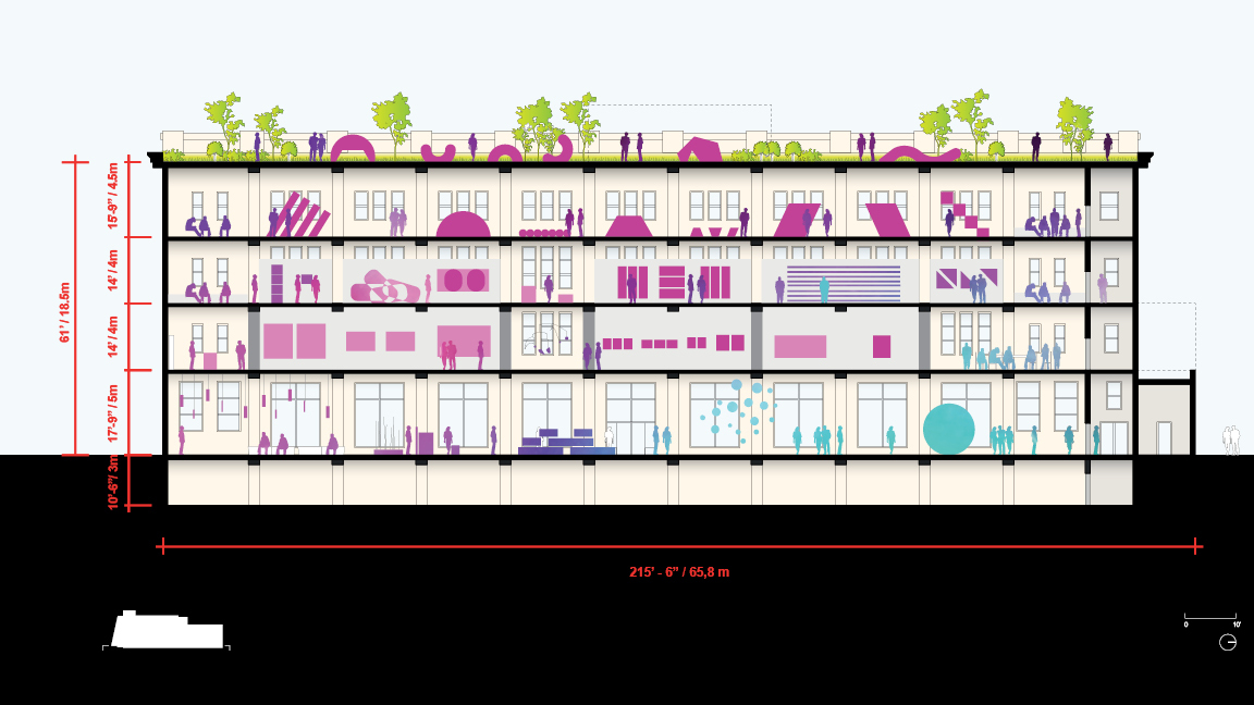 Обширные внутренние пространства здания, по словам чиновников, будут представлять собой комплекс передвижных перегородок для различных экспонатов, без коридоров, обнесенных стенами.