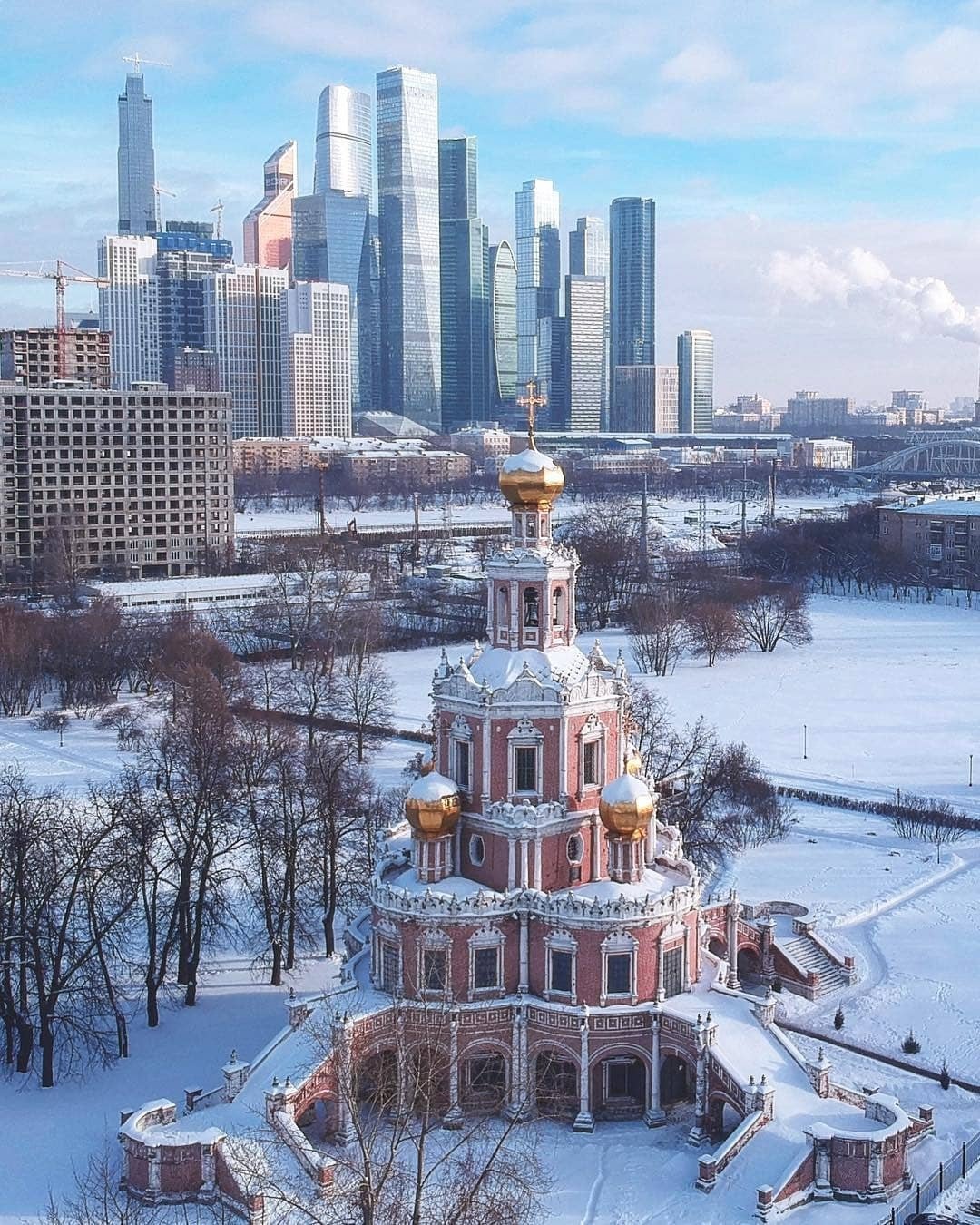 Интересный факт, что практически все старинные церкви и соборы Санкт-Петербурга построены в западном стиле. Единственный храм в русском стиле в историческом центре — это храм Пролитой крови, похожий на главный символ Москвы — Св.Основной собор. А в Москве — все церкви построены по русским православным традициям. Когда мы говорим о русских православных церквях, мы имеем в виду здания с вертикальной структурой, очень яркими цветами и множественными куполами.