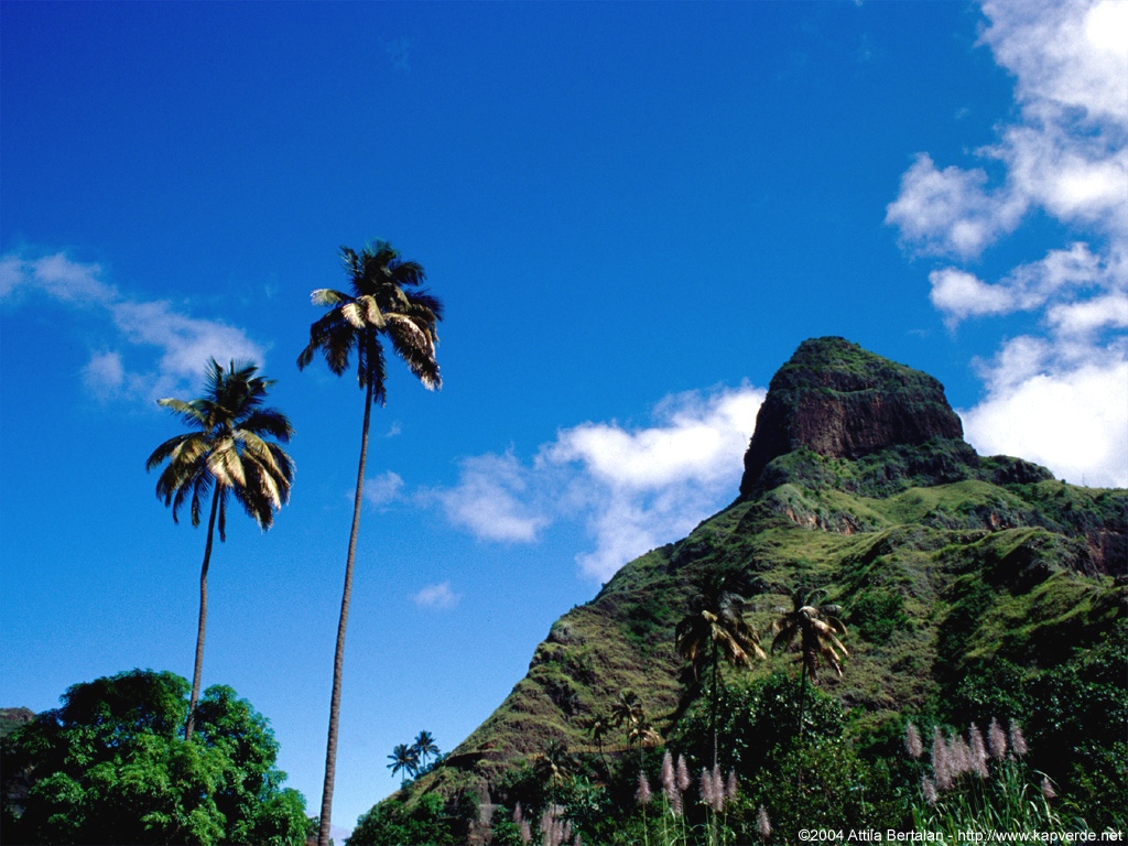 Надо сказать, что Кабо-Верде — это классическая пустыня. Из десяти островов только один можно назвать зеленым (вернее, половину одного). На северной стороне Санту-Антана дождь бывает в любое время года. Поэтому там есть ручьи, сосновые леса, плантации сахарного тростника — в общем, ландшафты, не поражающие своим угрюмым величием. Южная половина Санту-Антана — такая же, как все остальные Острова Зеленого Мыса.