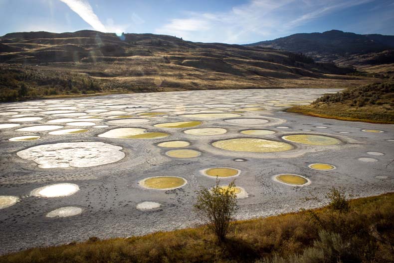 Споттед Лейк является самым минерализованным озером в мире. Каждая лужа имеет целебные свойства благодаря уникальному химическому составу.