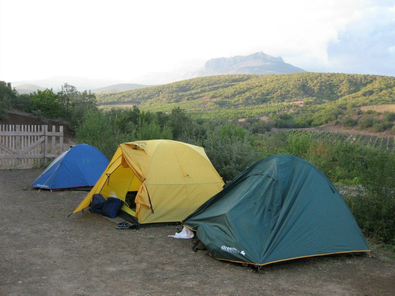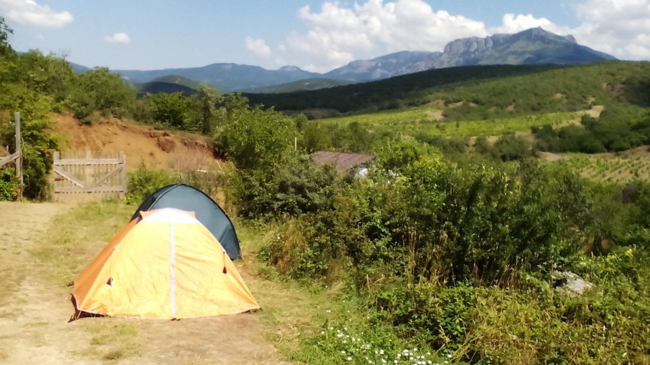 Палаточный кемпинг в Крыму вид на Демерджи.