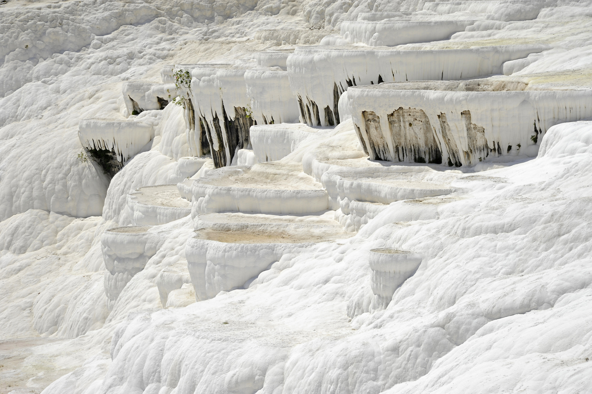 Белые террасы Памуккале не ледяные, а соляные. Конечно, речь идёт не о поваренной соли, а о карбонате кальция СаСО3.