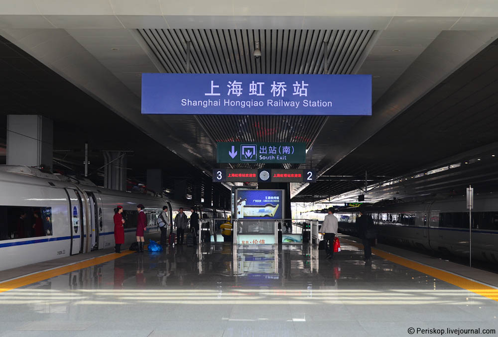 Расстояние Пекин-Шанхай по высокоскоростной железной дороге составляет 1318 км. Новая высокоскоростная линия была открыта в 2011 году.