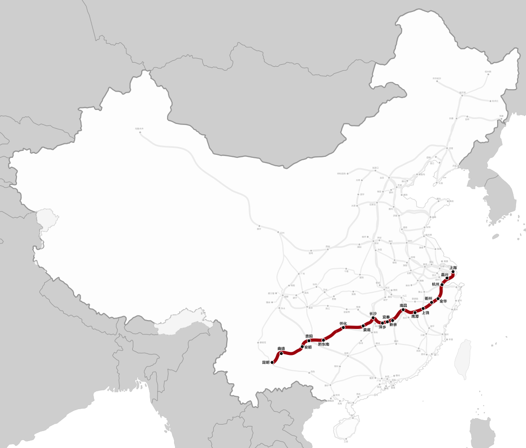 Время в пути между Пекином и Шанхаем, протяженностью 1318 километров, сократилось на полчаса до четырех часов 28 минут.