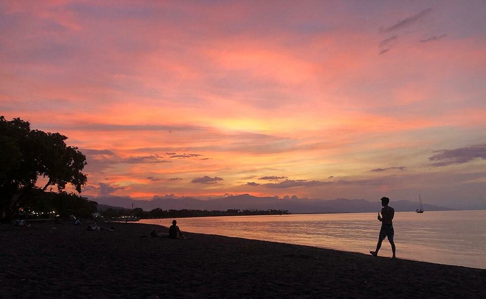 Гестхаусы и варунги тянутся вдоль всей дороги Raya Seririt-Singaraja от регионального центра Сингараджа — до Серирита, городка поменьше. Так что выбор жилья и кафешек вполне приличный! Мы жили где-то между Сингараджей и Ловиной, в гестхаусе Puri Mandhara, в двух минутах от пляжа с черном песком и множеством рыбацких лодок, и с прекрасными пастельными закатами. Искупаться, впрочем, нам там ни разу не захотелось. Сам гест очень уютный, с отличным интернетом, вкусным рестораном и песнями под гитару по вечерам, и гостеприимной семьёй хозяев. За 100 000 рупий — отличный набор благ цивилизации (кроме горячей воды и самой цивилизации). Но это ещё не Ловина.