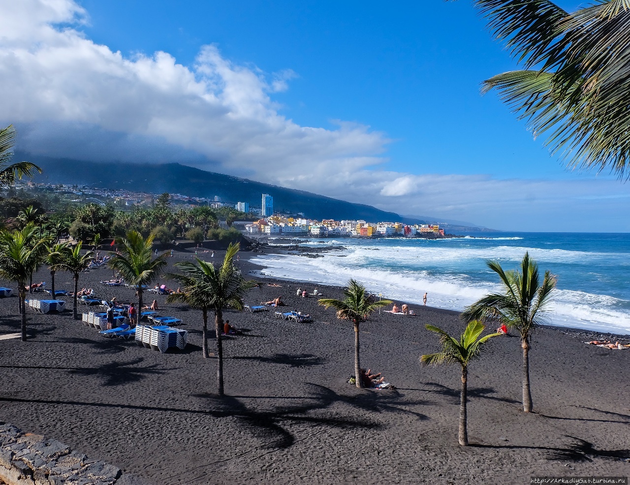 Ах, чуть не забыли — «изюминка» Плайя де Эль Больюльо — черный вулканический песок, такие песочные россыпи присущи всему северному побережью Тенерифе.