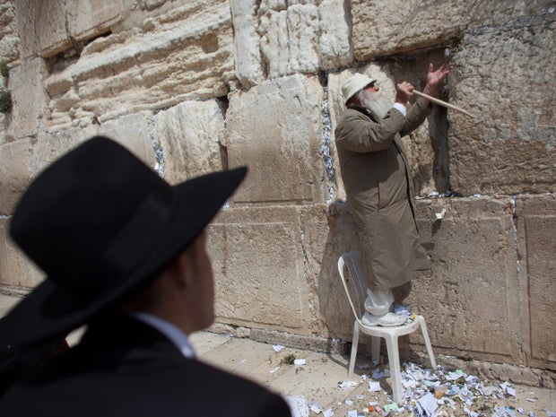 Люди также оставляют записки для Бога у Стены, которые позже проясняет раввин.