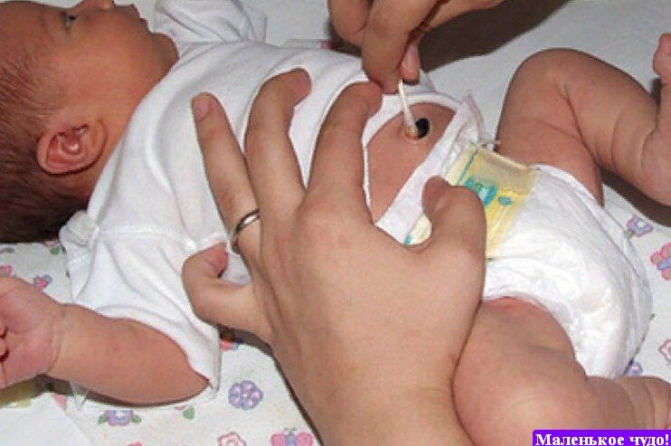 - Содержите пупок в чистоте и сухости. Обрабатывайте его 1-2 раза в день антисептическим раствором (перекись водорода, мирамистин).