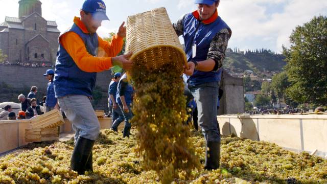 Прибытие на виноградники. Встреча с хозяином виноградника, после краткого инструктажа мы примем участие в сборе винограда. После сбора винограда отправимся в грузинскую семью и примем участие в давке винограда и процессе изготовления вина. Далее обед в грузинской семье, где гостеприимный хозяин угостит вас домашним вином и шашлыком, а радушная хозяйка подаст на стол домашние блюда: хачапури, баклажаны с орехами, сыр, джонджоли, хлеб и зелень.
