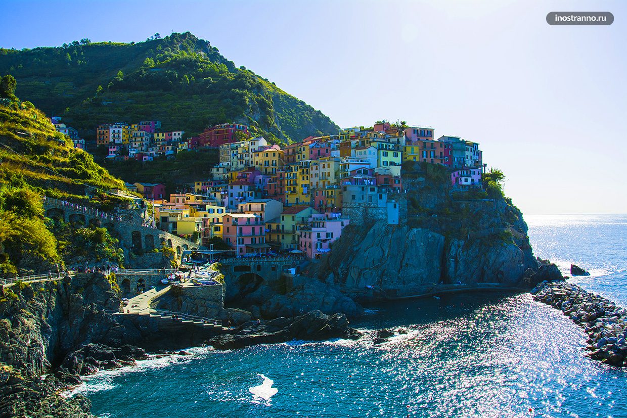 До Манаролы, самого старого из городов, можно добраться пешком другими путями или проехаться две минуты на поезде за 2 евро. Путеводители называют лучшим временем посещения Манаролы канун католического Рождества, когда в городе устраивают самой большой в мире вертеп, но и летом поездка в Манаролу останется незабываемой. Первым делом нужно идти к морю и фотографировать один из самых известных видов, который используется для обоев на рабочем столе в операционной системе Windows. После короткой фотосессии можно смело отправляться гулять по узким улицам, считать отъевшихся на местной рыбе котов и искать Иисуса, сделанного из болтов и шурупов и водруженного на одной из улиц на вершине манарольского холма.