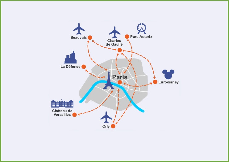 Пункты назначения трансфера из аэропорта Шарль де Голль