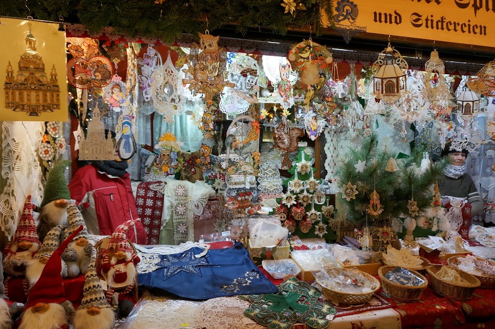 Две с половиной сотни палаток размещаются на дрезденской площади. Игрушки, изготовленные мастерами-ремесленниками, и украшения ручной работы можно приобрести на ярмарке. Гостей Дрездена удивит огромная рождественская пирамида. Традиционный символ Рождества высотой 14,62 метров изготовили мастера Рудных Гор.