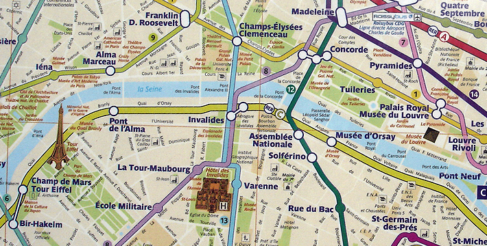 6 — выходы к Эйфелевой башне и башне Монпарнас;