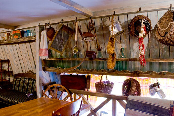 Интересно, что 11 лет назад Бархин уже построил в этом самом помещении ресторан и винотеку, а ради бистро вынужден был перепридумывать пространство заново. Михаил привлёк к работе своего друга, петербургского декоратора Андрея Дмитриева. Вместе художники проехали по деревенским рынкам, барахолкам и антикварным ярмаркам французского юга, чтобы купить для аля «Мужика» посуду и мебель, приборы и кастрюли, зеркала и украшения.