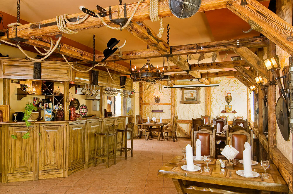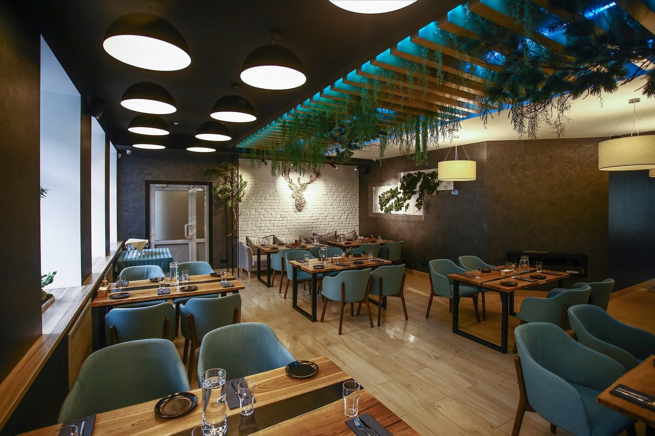 Внутри заведение пропитано нордическими мотивами: необработанное дерево, металл, минимализм. Интерьерный идеолог – Денис Беленко, у него получилось очень реалистично и атмосферно.