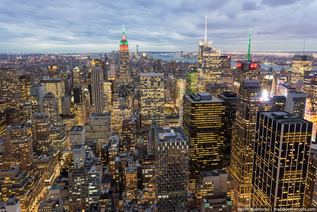 Смотровая площадка в Рокфеллеровском центре Tomás FanoГигантский ТРЦ на Манхэттене, в котором также размещены офисы различных средств массовой информации, включая Вы можете покататься тут на коньках зимой, или пройтись по ресторанам и магазинам в любое время года. Открыта круглосуточная обзорная площадка Top of the Rock. Основной частью Рокфеллер-центра является 70-уровневая многоэтажка RCA.