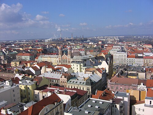 Главная площадь является одной из самых больших в Европе, с собором Святого Варфоломея 13-го века в качестве готического центра.