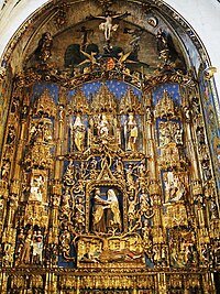 Причудливые фасады собора (все четыре — совершенно разные) и дробный декор башен в стиле чурригереско — результат перестроек храма, предпринятых Габсбургами и Бурбонами в XVI—XVIII веках. Внешние стены и внутренность храма расточительно украшены скульптурой разных времён, но преимущественно средневековой.