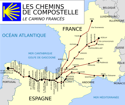 Самый важный участок Пути Святого Иакова начинается на юге Франции, идет через Пиренеи (через перевалы Ронсеваль или Сомпорт). Главная магистраль в Испании ведет от Памплоны до Сантьяго-де-Компостелы и носит название «Дороги французских королей».