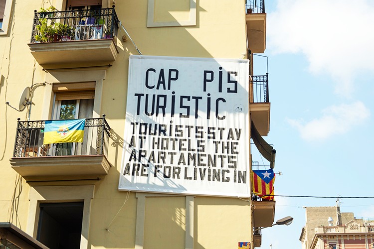 В Барселоне-2017 сложно пройтись по популярным местам, не натолкнувшись на антитуристические граффити и плакаты: «Туристы, езжайте домой!», «Туристы, вы убиваете наш город!» и «Остановите туризм!». Старый злобный плакат у парка Гуэль продолжают перерисовывать: «Если это сезон туристов, то почему нельзя на них охотиться?» («Why call it tourist season if we canʼt shoot them?»).
