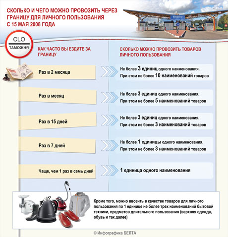тютюну, 200 сигарет або 25 сигар. Алкоголю – будь-якого – дозволено ввозити не більше ніж літр. Парфумів можна ввозити також не більше літра, але так, щоб було ясно, що вони призначаються для особистого використання. Електроприлади можна ввозити, якщо в багажі не більше одного предмета одного виду.