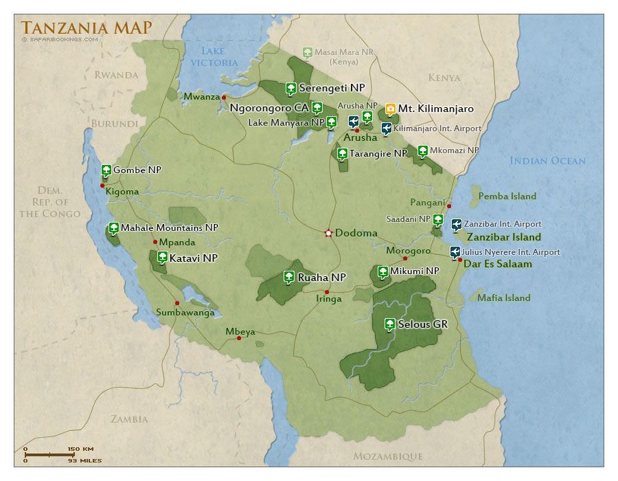 Заповедная территория расположена на северо-западной стороне Танзании.