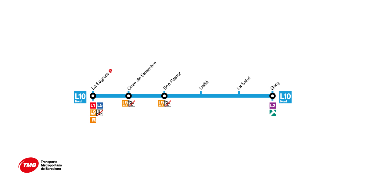 Линия метро L9 Sud, идущая до аэропорта Эль-Прат, имеет 15 остановок: