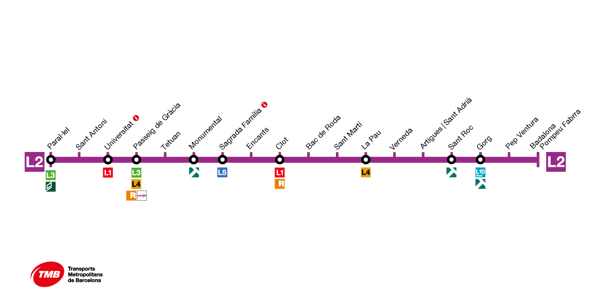 - Доступность : По состоянию на октябрь 2020 года только 14 из 159 станций метро Барселоны еще не адаптированы для пользователей с ограниченными физическими возможностями. Принимаются меры к тому, чтобы все станции были доступны как можно скорее.
