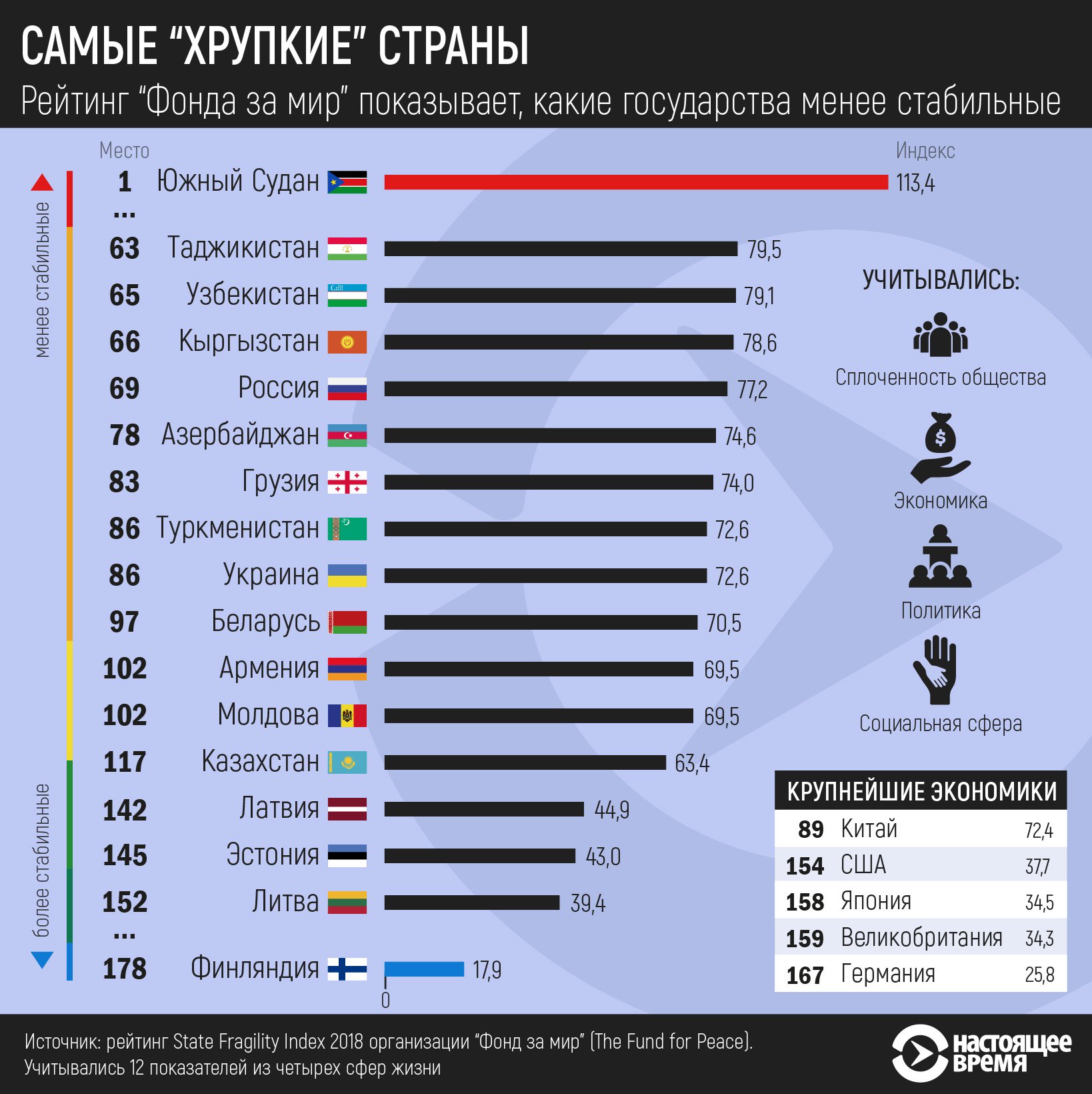 Итоговая оценка страны и ее место в рейтинге — это средний суммарный балл всех критериев. По каждому страна получила оценку от 1 до 100. Затем оценки складывались и делились на количество учтенных параметров.