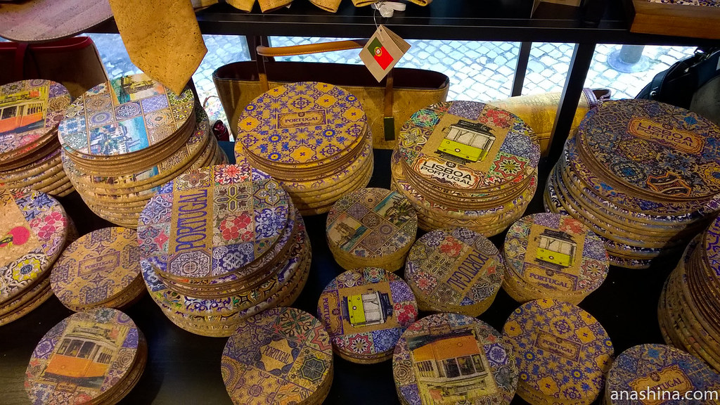 Удивит большой выбор пробковых зонтов и украшений, поразят свадебные наряды и вечерние платья из кортиса. Практичность и гипоаллергенность потребительских товаров и сувениров из пробкового дерева, их красивый вид способствуют повышенному спросу туристов. Чтобы сделать лучший выбор такого презента, заходите в специализированные магазины Лиссабона сети Pelcor и Cork & Co. Аксессуары из пробки стоят от 10 €, телефонные чехлы подберете за 20 €, но авторские работе типа кошелька и клатча потянут до 40 €.