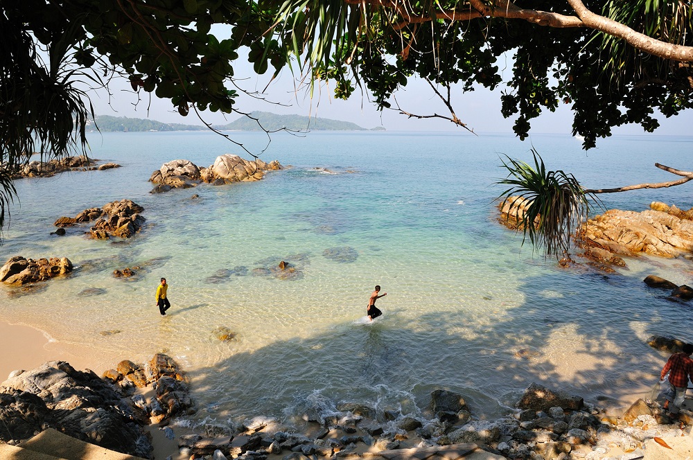 Оказалось, что вода там совсем прозрачная, почти как на островах Пхи-Пхи. Между купаниями залез на камни.