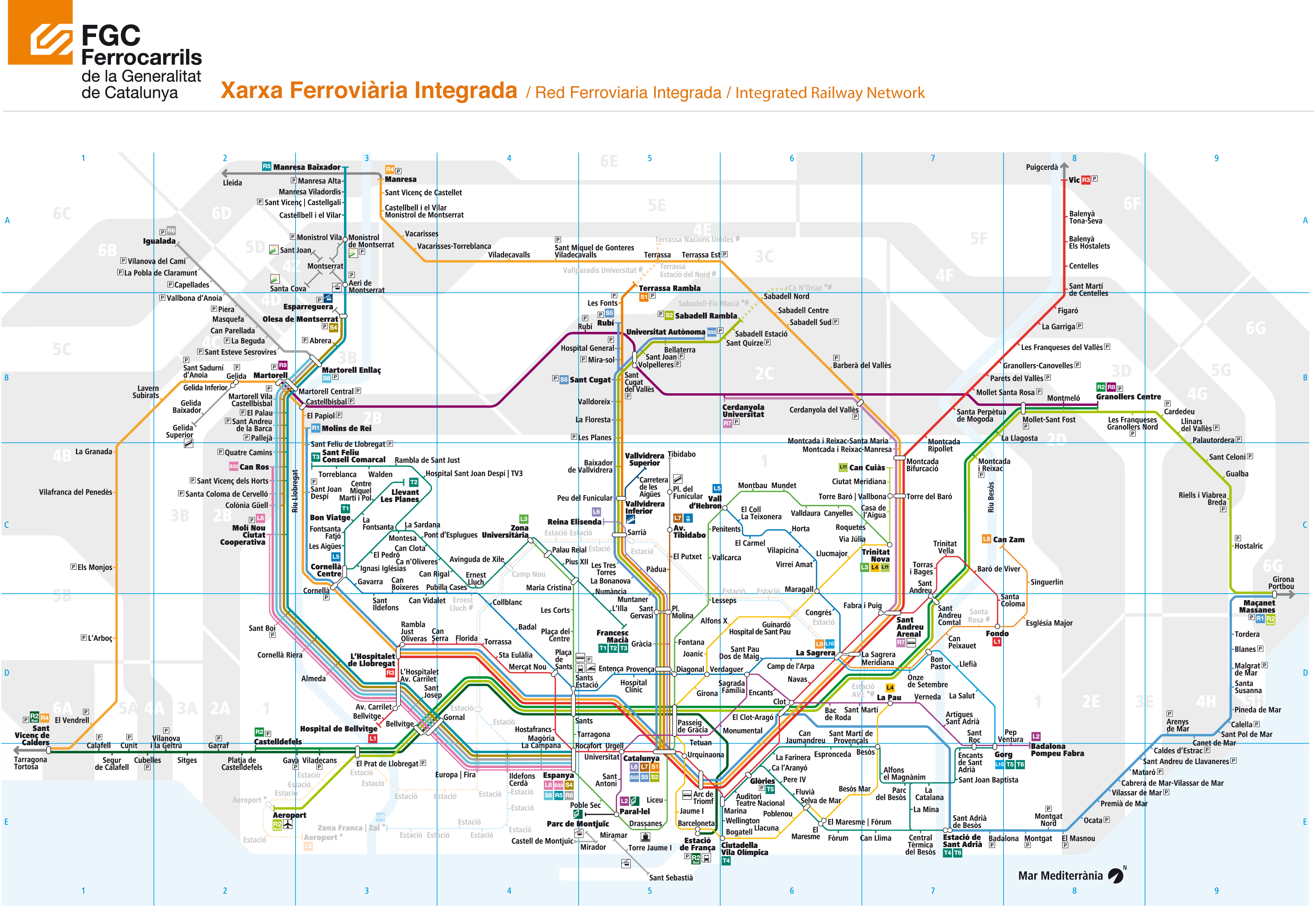 Кроме того, в Барселоне есть городская железнодорожная сеть FGC, которая дополняет сеть метро, она включает в себя три линии.
