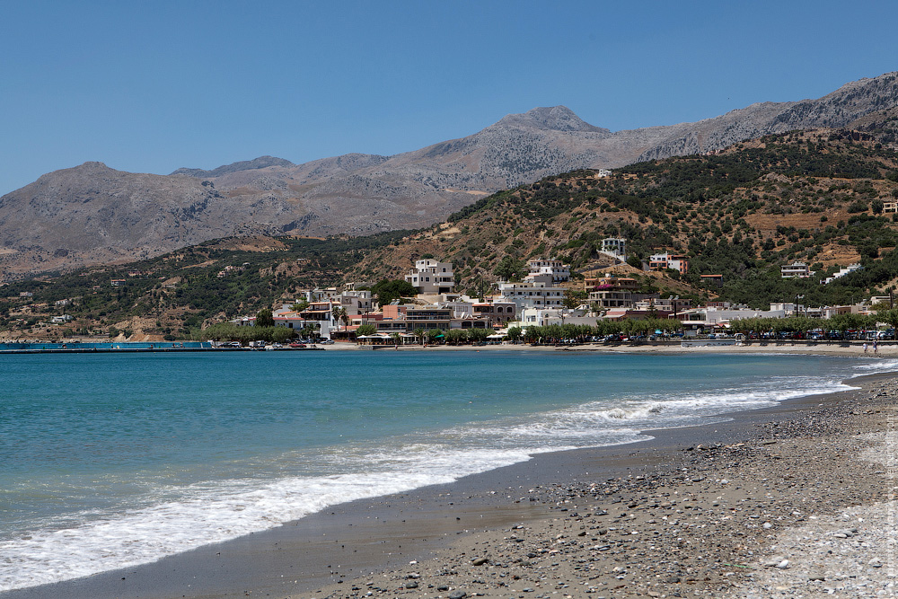 - С юга Крит омывается спокойным Ливийским морем. Температура воды в нём на несколько градусов меньше, чем в предыдущем, а побережье по большей части состоит из гор.