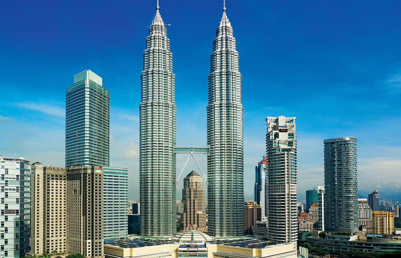 Небоскребы — американское изобретение. Однако в условиях экономического бума в Азии растет строительство многоэтажных зданий. Огромный 88-этажный небоскреб высотой 452 метра находится в столице Малайзии — это и есть знаменитые башни-близняшки Петронас Тауэрс, которые в течение долгого времени считались самым большим небоскребом на нашей планете. Большое впечатление производит «Петронас Твин Тауэрс», который стал «визитной карточкой» Куала-Лумпура. Возвышаясь над городом, башни символизируют собой нынешнюю Малайзию, стремящуюся войти в число развитых государств.