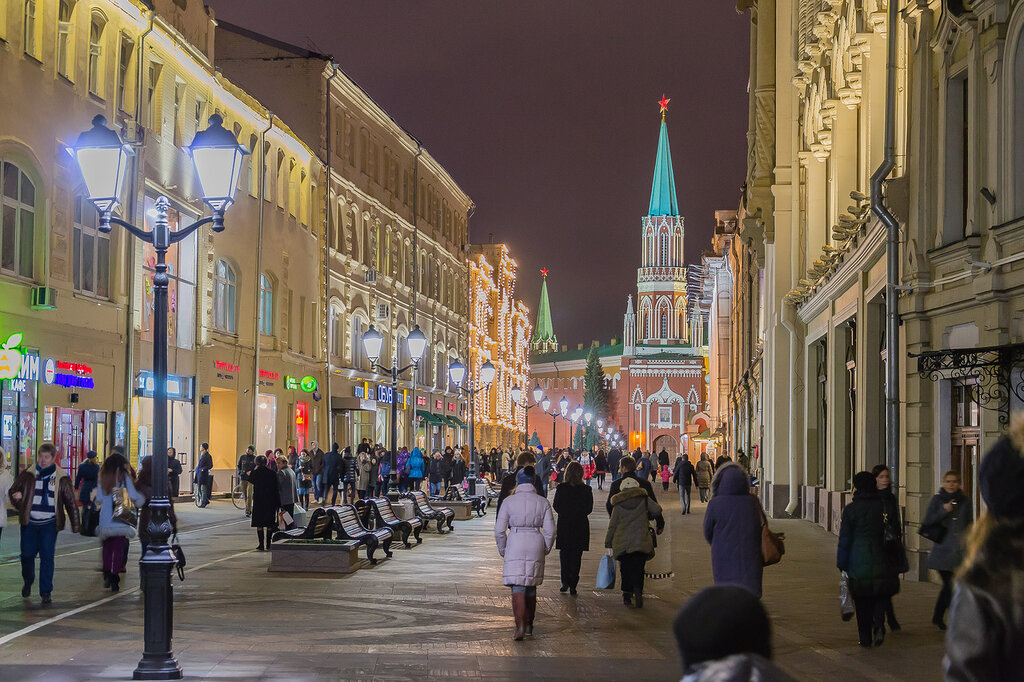 Самыми популярными местами для прогулок, как у горожан, так и у туристов, являются пять улиц в центре города — Никольская, Большая Дмитровка, Кузнецкий Мост, Столешников переулок и Камергерский переулок.Несколько лет назад они были украшены светодиодными гирляндами, которые мерцали тысячами огней, создавая праздничную атмосферу независимо от погоды и времени года.