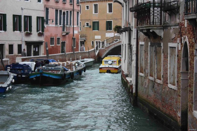 Представьте любой средневековый город с узкими улочками, в котором сняли булыжники и залили дороги водой. Примерно так. Поэтому транспорт такой, который плавает и ваши собственные ноги. В обычных городах вход в дом откуда? Правильно, с улицы. Крыльцо, подъезд. В Венеции, там где нет тротуаров, вход в дом — это дверь в стене, под которой вода. Возле стены пришвартованы лодки, как у нас припаркованы машины.
