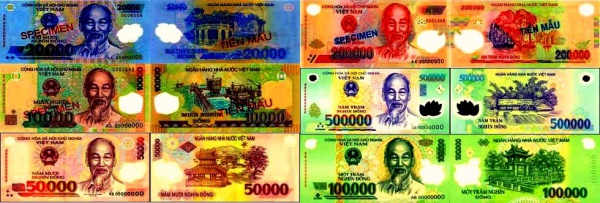 В республике своя валюта «Донг» и она является одной из самых маленьких в мире. Здесь используются банкноты номиналом в несколько тысяч – это правда. Есть 500 000, 200 000, 100 000, 50 000, 20 000, 10 000, 5000, 2000, 1000, 500, 200 и 100 донгов – в первое время это немного дезориентирует туристов, но русские не сильно удивляются, ведь у нас самих было такое в 90-ые года.